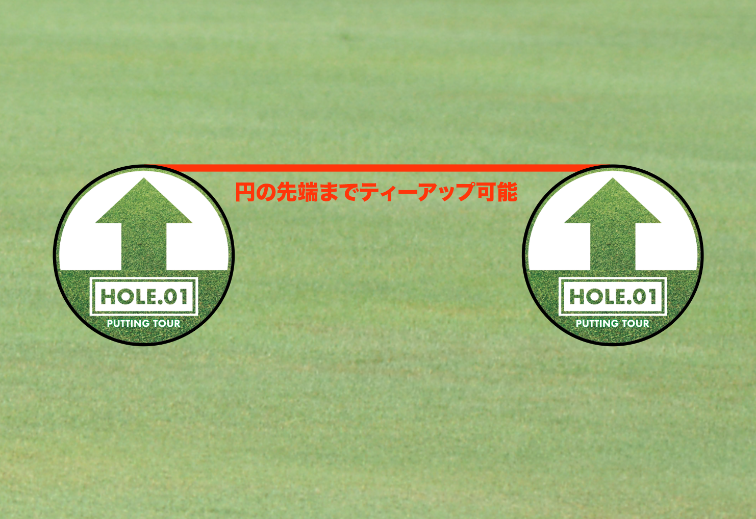 円の後端までティーアップが可能です。